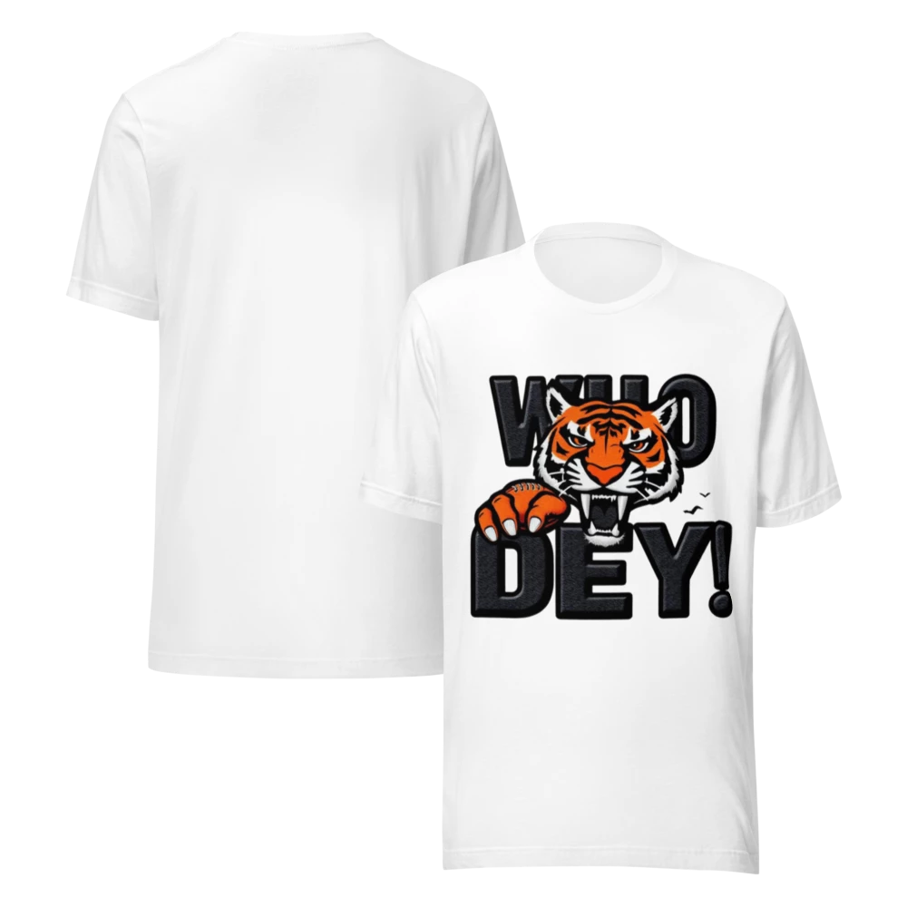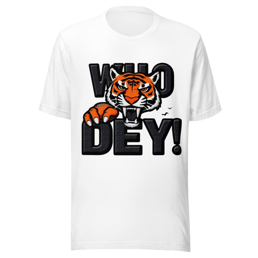 Experience the ultimate comfort with our 'Who Dey!' t-shirt, designed for both style and comfort. Made from 100% combed and ring-spun cotton, this tee remains soft yet durable, offering the perfect blend of lightness and flexibility.